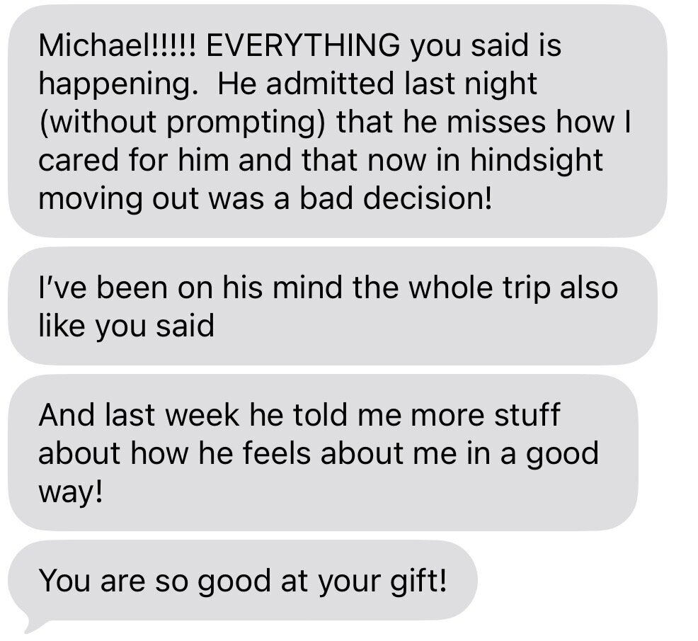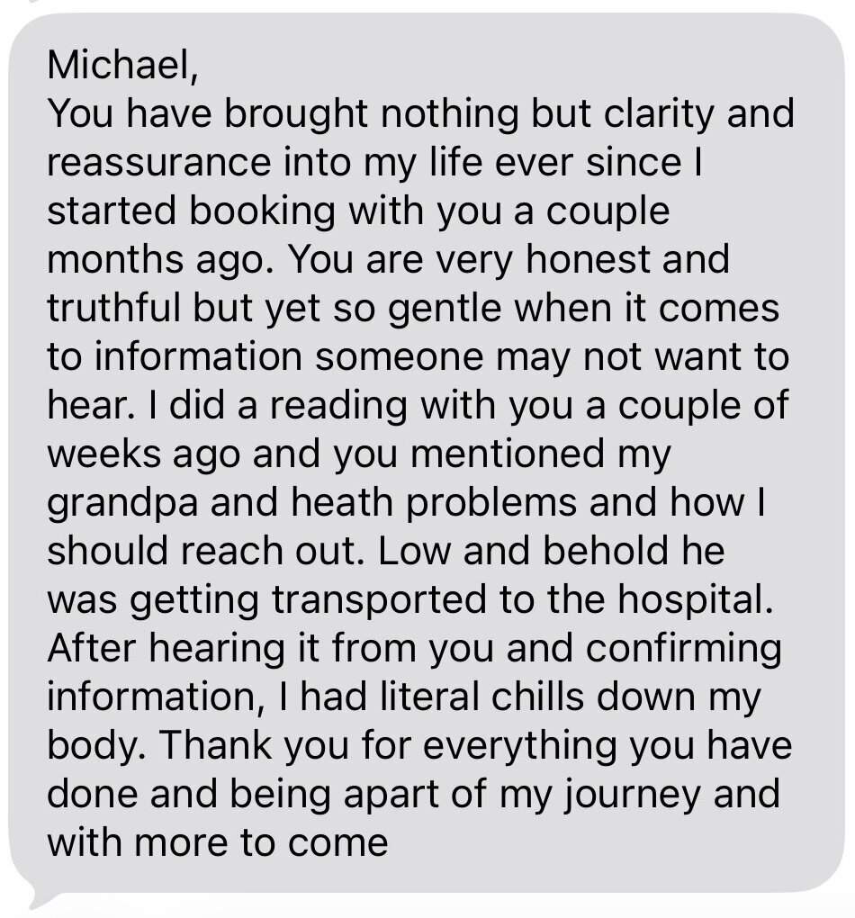 “Quick and impressive! Michael immediately picked up on all of the key factors in my situation and even echoed my own thoughts. I left feeling understood and energized.”